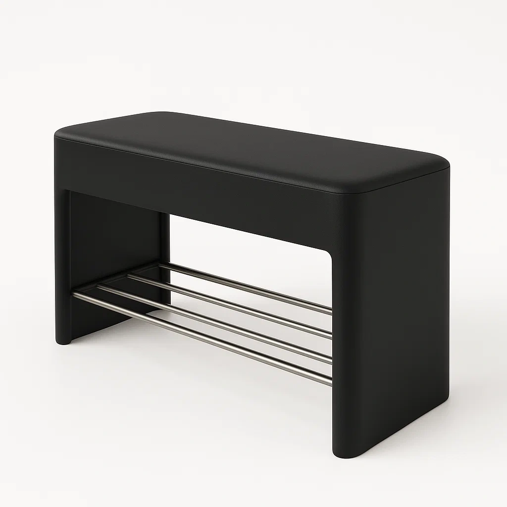 Banco de almacenamiento PU Negro con Estantería de Acero Inoxidable